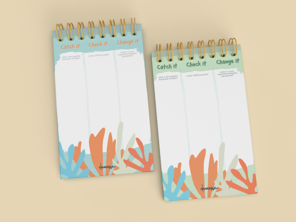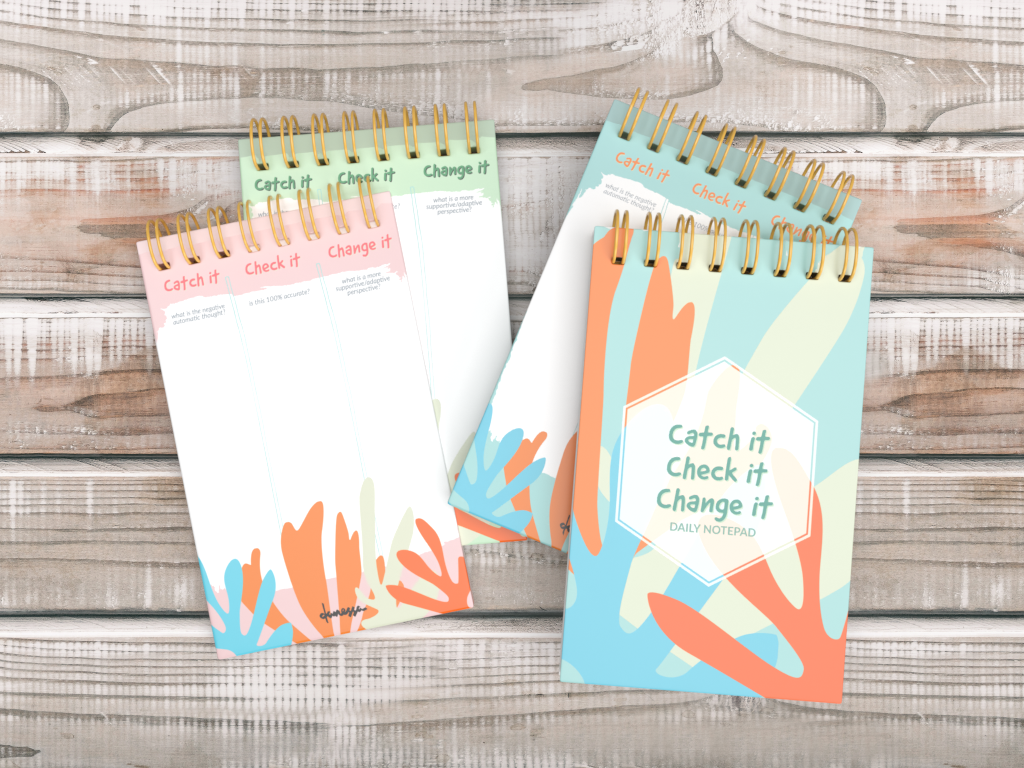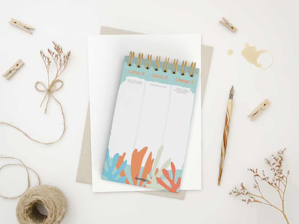 Get ahold of those Negative Automatic Thoughts (NATs)! The Catch It, Check It, Change It Handmade Daily Notepad helps you remember to use this important Cognitive and Behavioral Therapy skill. Work on challenging those NATs on a regular basis and see your progress over time. Each notepad is proudly handcrafted in small batches in California.